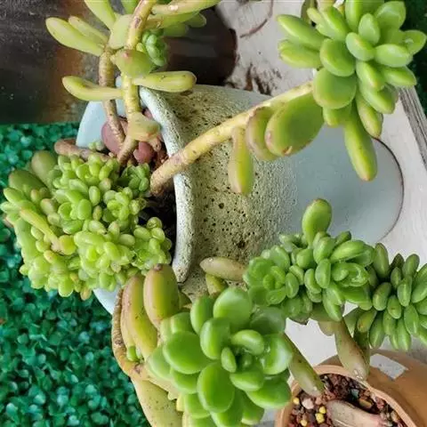 玉缀,别名翡翠景天景天科景天属常绿或半常绿多肉植物,植物匍匐下垂,翠绿色。叶小,多汁,纺锤形,…