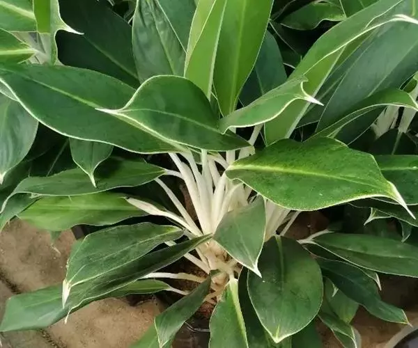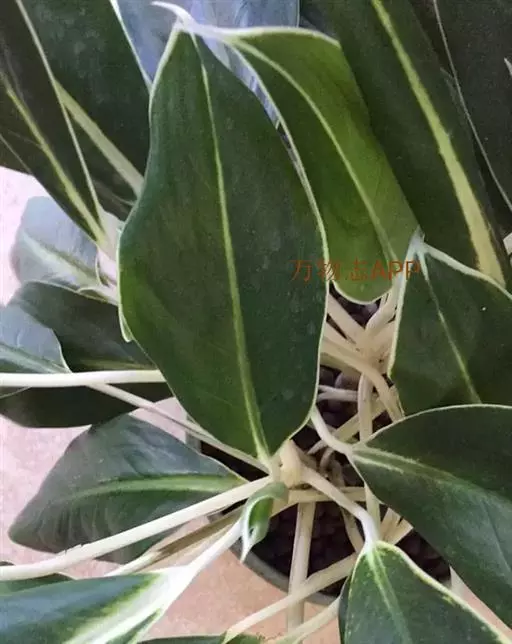 粗肋草学名:Aglanonema spp. 别名:广东万年青、万年青 性状描述:多年生草本;茎直立,不分枝;叶形多变,从披针形、长椭圆形乃至卵形,中肋两边。