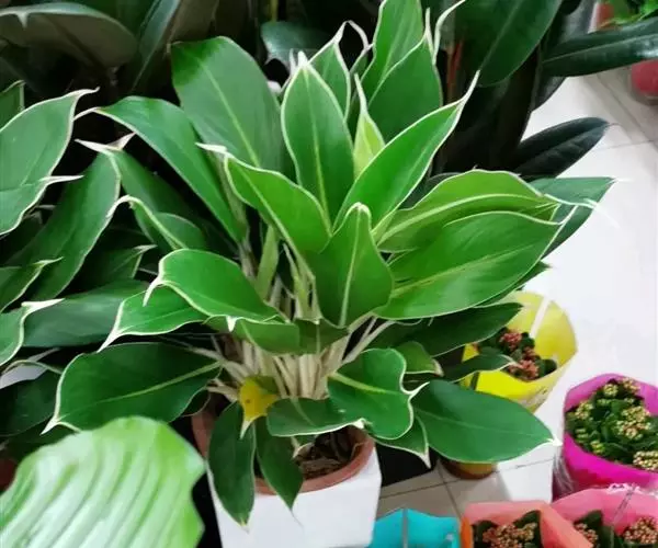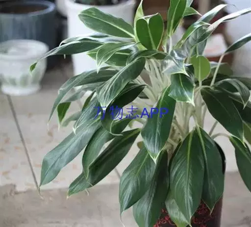 天南星科,原产于热带亚洲。多年生草本观叶植物。原产于马来西亚。茎直立,不分枝。株高约30~50公分,叶披针形或长椭圆形,叶面随品种而变化,革质肉厚,常有不同的银色或白色斑镶嵌,成株能开花。植物株形不高,耐阴性强,四季常绿,为优良之室内观叶植物。中肋两边常不等大,叶色暗绿,并散生灰色、乳白色或黄色.