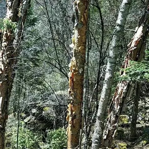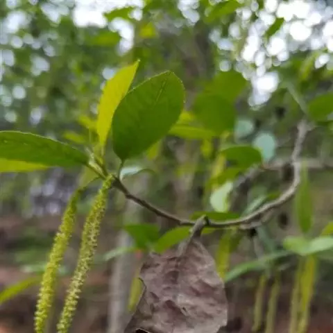 亮叶桦是桦木科桦木属的高大乔木植物。株高可达25米;树皮光滑;幼枝密被黄色柔毛及稀疏树脂腺体;叶卵状椭圆形、长圆形或长圆状披针形,先端渐尖或尾尖,基部圆、近心形或宽楔形,幼时密被柔毛,下面密被树脂腺点,具不规则刺毛状重锯齿,叶柄密被长柔毛及树脂腺体;雌花序单生,细长圆柱形,密被柔毛及树脂腺体;果苞中裂片长圆形或披针形,小坚果倒卵形,疏被柔毛;花期3月下旬至4月上旬;果期5月至6月上旬。亮叶桦分布于中国云南、贵州、四川、陕西、甘肃、湖北、江西、浙江、广东、广西等省地,常生于海拔500-2500米之阳坡杂木林内。其喜温暖湿润的气候环境,较耐阴、耐干燥贫瘠,适宜在深厚肥沃、光照充足的酸性沙壤土上生长。繁殖方式一般为种子繁殖。亮叶桦的根、皮、叶都可入药,味甘、辛,性凉,归肾、胃、心、膀胱经,具有清热利尿、解毒、祛湿散寒、消滞中和等功效,可用