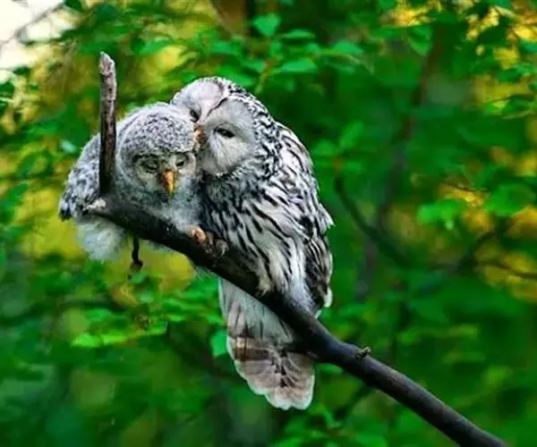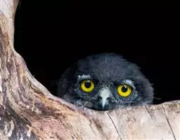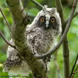 雏鸟 灰林鸮的繁殖期在1月至翌年4月。主要营巢于树洞中,有时也在岩石下面的地上营巢或利用鸦类巢。每窝产卵1-8枚,通常2-4枚。卵的大小为46-49mm×39-42mm。雌鸟孵卵,孵化期28-30天。雏鸟晚成性,经过亲鸟29-37天的喂养才能飞翔。雏鸟会于长羽毛前离开鸟巢。雏鸟的生存率不明,但成年每年的生存率为76.8%。灰林鸮一般寿命约为5年,但亦曾发现有分别超过18岁及27岁的野生及饲养灰林鸮。