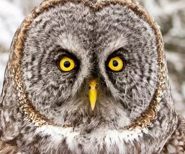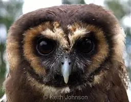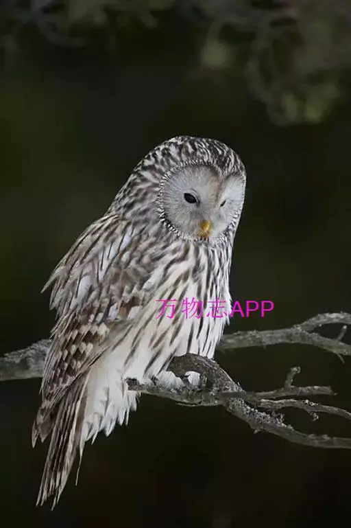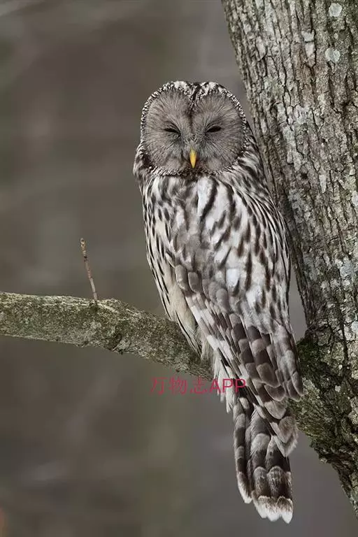 灰林鸮的虹膜暗褐色,嘴角褐色,先端腊黄色,爪角黄褐色(华南亚种)。