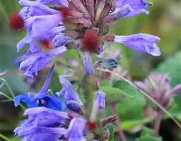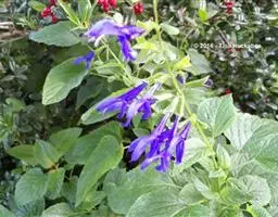 聚伞花序排成圆锥花序式,顶生,长10-27厘米,花序梗密生灰白色绒毛;花萼钟状,顶端有5裂齿,外有灰白色绒毛;花冠淡紫色,外有微柔毛,顶端5裂,二唇形;雄蕊伸出花冠管外;子房近无毛。