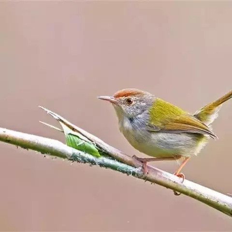 黑喉缝叶莺:体长11.5厘米,是一种小型的顶冠棕色、腹部白色的莺。尾甚长而常上翘,臀黄色,…