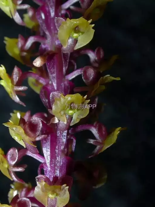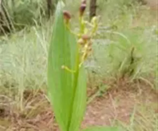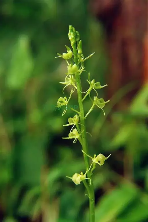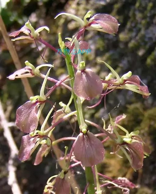 地生草本。假鳞茎卵形,长5-12毫米,直径3-8毫米,外被白色的薄膜质鞘。叶2枚,卵形、卵状长圆形或近椭圆形,膜质或草质,长5-10(-16)厘米,宽2-4(-7)厘米,先端急尖或钝,边缘皱波状或近全缘,基部收狭成鞘状柄,无关节;鞘状柄长3-8厘米,初时抱花葶,果期则多少分离。花葶长12-50厘米;花序柄圆柱形,两侧在花期可见狭翅,果期则翅不明显;总状花序具数朵至10余朵花;花苞片狭卵形,长2-3(-5)毫米;花梗和子房长8-10毫米;花通常淡缘色,有时可变为粉红色或带紫红色;萼片线状披针形,长7-9毫米,宽1.5-2毫米,先端略钝,具3脉;侧萼片稍斜歪;花瓣丝状,长7-9毫米,宽约0.5毫米,具1脉;唇瓣近倒卵形,长6-8毫米,宽4-5毫米,先端具短尖,边缘稍有不明显的细齿或近全缘,基部逐渐变狭;蕊柱长2.5-3.5毫米,上端略有翅,基部扩大。蒴果倒卵状长圆形,长8-13毫米,宽4-6毫米;果梗长5-9毫米。花期6-8月,果期9-10月。