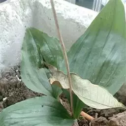假鳞茎卵形,叶2枚对生,黄褐色,皱缩,展开后卵形、卵状长圆形,纸质,易碎。气微,味淡。