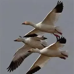 雪雁是鸭科雁属鸟类,雁属中体形大,个体重的鸟类。羽毛洁白,翼角黑色。飞行时双翼拍打用力,振翅频率高。…