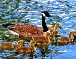 黑雁是雁形目鸭科黑雁属鸟类,又称黑鹅。头、颈、胸、嘴及脚黑褐色;虹膜褐色;背及两翼灰褐色;尾下覆羽白色;胸侧及胁部多近白色纹;颈部两侧各具一个特征性白色横纹,在颈前后断开,未能联成颈环。幼鸟颈部无白斑,而翅上多白色横纹。黑雁繁殖于北美洲、西伯利亚极地的苔原冻土带,越冬于南方沿海的草地及河口。在中国安徽也能见其身影。主要栖息在海湾、海港及河口等地,在冬季里大多出现在有耐碱植物生长的湖泊和水库周围,也出现在周围地势低洼的咸水湖和沿海地区,偶尔还出现在农田地里。性活跃,喜集群,常成群活动和栖息。主要以植物性食物为食。繁殖期在6-8月,雌鸟孵卵,雄鸟通常在距巢100米以内范围内守候警诫。雌鸟孵卵时常将头和颈朝地面平伸出去以降低高度。孵化期为22-28天。黑雁被列入中国林业局2000年8月1日发布的《国家保护的有益的或者有重要经济、科学研究价值的陆生野生动物名