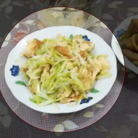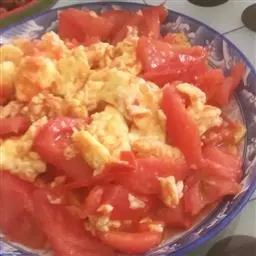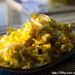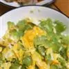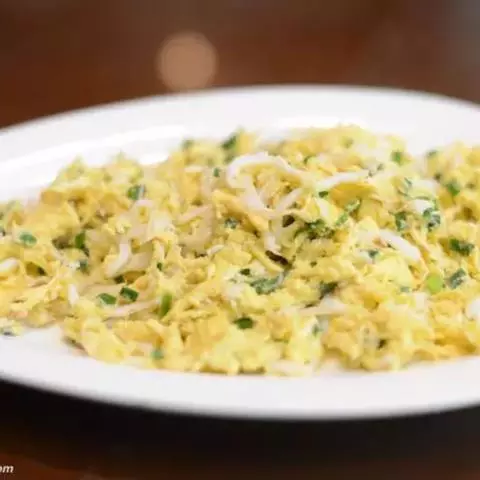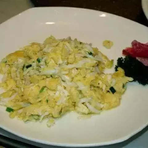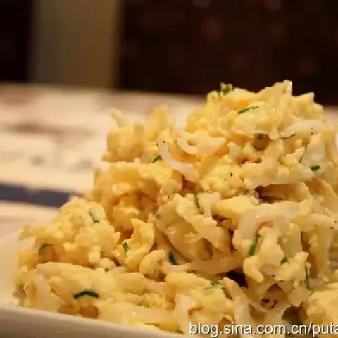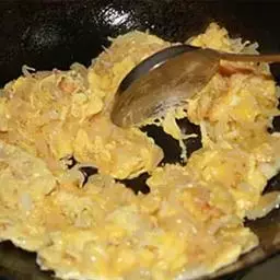 5.下入打散的鸡蛋,用筷子搅散盛出。