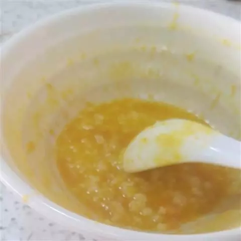2.冷却后加入蛋黄搅匀,蛋挞水就完成了;