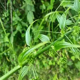 菝葜,菝葜科菝葜属 多年生藤本落叶攀附植物,茎干较粗,嫩白色,呈圆柱形,表面带有小刺;叶子较大,…