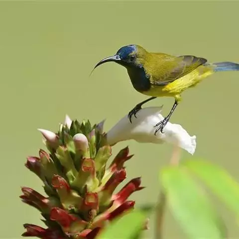 纹背捕蛛鸟:为太阳鸟科捕蛛鸟属的鸟类。是太阳鸟科中体型较大的一种,体重25-45克,…