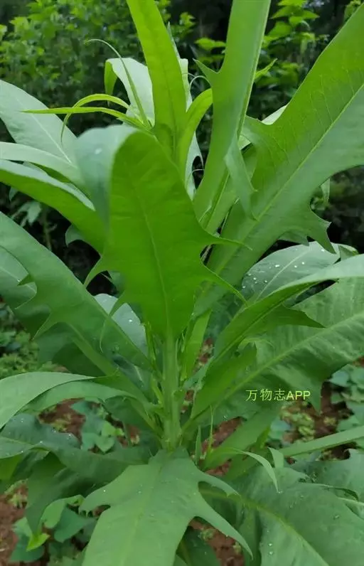 一年生或二年草本,高25-100厘米。根垂直直伸。茎直立,单生,上 莴苣 部圆锥状花序分枝,全部茎枝白色。基生叶及下部茎叶大,不分裂,倒披针形、椭圆形或椭圆状倒披针形,长6-15厘米,宽1.5-6.5厘米,顶端急尖、短渐尖或圆形,无柄,基部心形或箭头状半抱茎,边缘波状或有细锯齿,向上的渐小,与基生叶及下部茎叶同形或披针形,圆锥花序分枝下部的叶及圆锥花序分枝上的叶极小,卵状心形,无柄,基部心形或箭头状抱茎,边缘全缘,全部叶两面无毛。