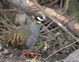 褐胸山鹧鸪:雄鸟体长22厘米,体重310克;雌鸟体长23厘米,体重220-275克。前额皮黄白色,…