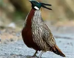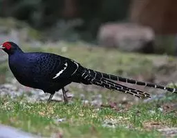 白颈长尾雉:大型鸡类,体长81厘米,体型大小和雉鸡相似。雄鸟头灰褐色,颈白色,脸鲜红色,其上后缘有…