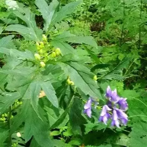 黄草乌:毛茛科,乌头属多年生草本植物,块根椭圆球形或胡萝卜形,茎缠绕,叶片坚纸质,五角形,…