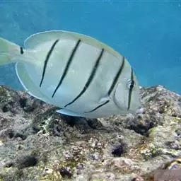 横带刺尾鱼,刺尾鱼科刺尾鱼属的一种鱼类。俗名条纹刺尾鱼。鱼吻及下颌周围有淡色环。体被细小栉鳞。体色…