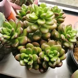 玉缀,别名翡翠景天景天科景天属常绿或半常绿多肉植物,植物匍匐下垂,翠绿色。叶小,多汁,纺锤形,…