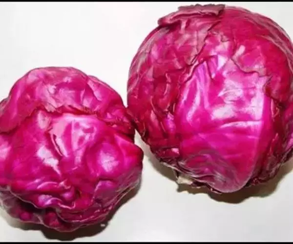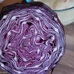结球甘蓝中的一个类型,由于它的外叶和叶球都呈紫红色,故名紫甘蓝。紫甘蓝叶片紫红,叶面有蜡粉,叶球近圆形。它营养丰富,尤其含有丰富的维生素C、V和较多的维生素E和B族。在炒煮时,颜色成为黑紫色,十分美观;在欧洲地区主要作为色拉菜或西餐配色用,可用于生食、汤食、炒食。整棵购买时,可以将心挖除,用沾湿的报纸塞入其中,再用保鲜膜包起来。