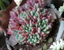 圣诞冬云整体来说养护不难,夏季不休眠,但生长缓慢,可少量给水,适当遮阴,如叶片干瘪柔软,就是缺水严重的征兆了,如果种植环境过于闷湿,圣诞冬云的下部叶片有些会黄化化水,出现这种情况,应注意通风控水。 夏季的圣诞冬云叶片颜色会显得较绿,仅叶尖和叶缘有红边。非夏季的圣诞冬云生长速度较快,浇水可干透浇透,尽量给予充足光照,圣诞冬云较抗寒,据说可适应零下3℃左右的温度,配合秋冬季节的温差,圣诞冬云叶片颜色会变得较浅,有点黄绿透明感,叶缘的红晕会渲染开,颇为娇艳。