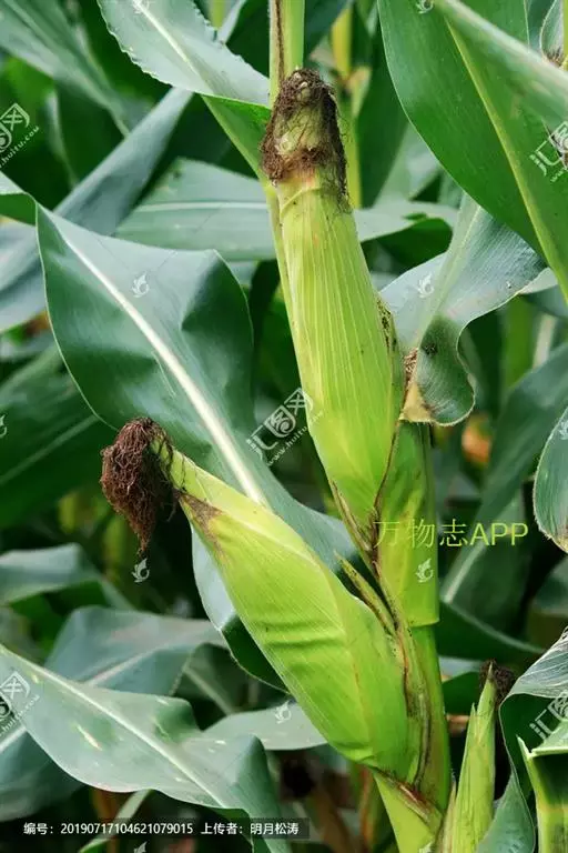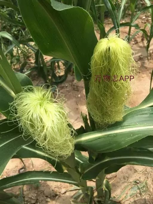玉米 一年生高大草本。秆直立,通常不分枝,高1-4米,基部各节具气生支柱根。叶鞘具横脉;叶舌膜质,长约2毫米;叶片扁平宽大,线状披针形,基部圆形呈耳状,无毛或具疵柔毛,中脉粗壮,边缘微粗糙。顶生雄性圆锥花序大型,主轴与总状花序轴及其腋间均被细柔毛;雄性小穗孪生,长达1厘米,小穗柄一长一短,分别长1-2毫米及2-4毫米,被细柔毛;两颖近等长,膜质,约具10脉,被纤毛;外稃及内稃透明膜质,稍短于颖;花药橙黄色;长约5毫米。雌花序被多数宽大的鞘状苞片所包藏;雌小穗孪生,成16-30纵行排列于粗壮之序轴上,两颖等长,宽大,无脉,具纤毛;外稃及内稃透明膜质,雌蕊具极长而细弱的线形花柱。颖果球形或扁球形,成熟后露出颖片和稃片之外,其大小随生长条件不同产生差异,一般长5-10毫米,宽略过于其长,胚长为颖果的1/2-2/3。染色体2n=20,40,80 (Sarma et Sharma, 1986; Molina, 1986)。花果期秋季。