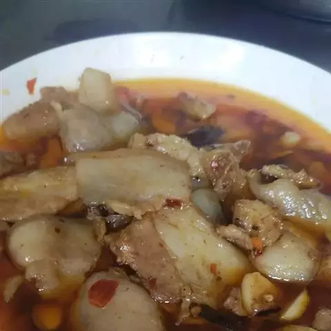 另外葱姜蒜和泡红椒一样都不可少,少了就不是原来的味道了。