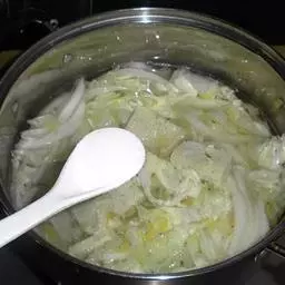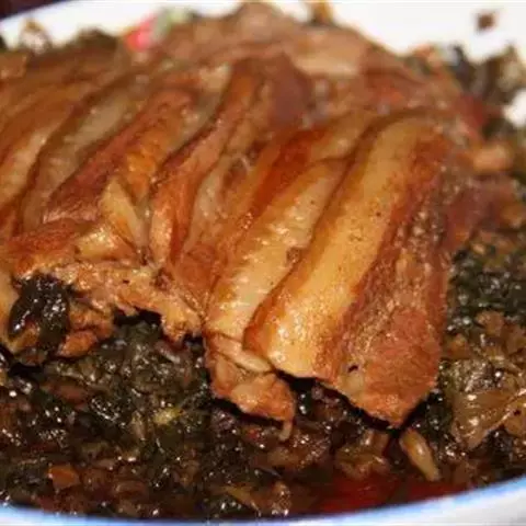为了追求好的口感,最好剁一些肉,肥肉瘦肉各一半,剁好后,把锅内的油烧热,将咸鱼粒放下去炒,七成熟时,将剁好的肉、葱头段一块扔进锅内,翻炒几下,然后放水下去焖。水不能多,也不能少。下一些盐,要放鱼露,鱼露最入味的了。再下一些老抽上色。这时,把锅盖盖上。焖上一阵即可。