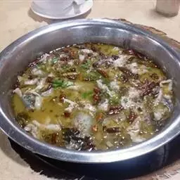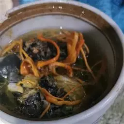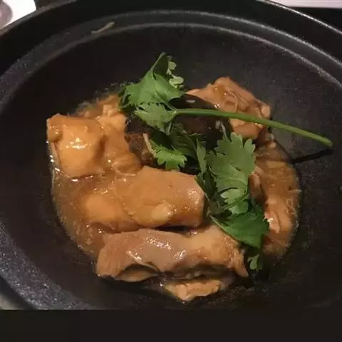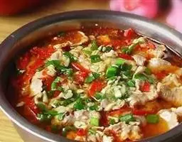 3、锅留底 入味精,用永生粉勾芡,滴醋,加麻油,即可盛入烧热的煲中。
