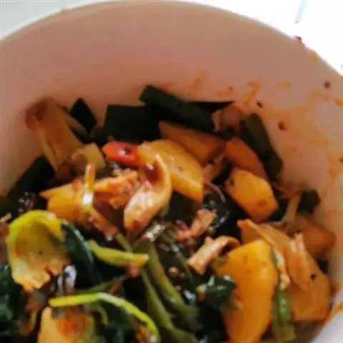 有一天晚上,这个家中的女主人在炒另一只菜的时候,她为了不让配料浪费,她把上次烧鱼时用剩的配料都放在这款菜中炒和,当时她还以为这款菜可能味不是很好吃,可能家中的男人回来后不好交待,正在她发呆之际,她的老公做生意回家了。