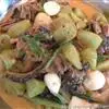 4.茄子段入味后放入蒜末、红椒段和草菇老抽起锅,最后撒上香葱段即可。