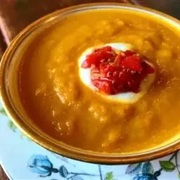 2.锅里放入烧汁50克,香菜25克、八角3个、香叶一片、红酒40克、白糖45克之后烧开,勾芡浇在刚才的茄子上即可。