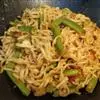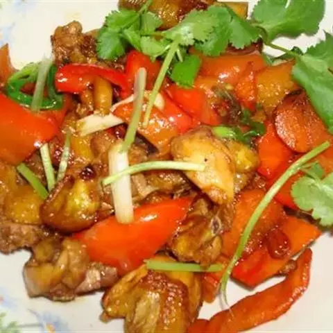 9.翻炒三至四分钟后放入青椒。