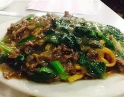 11:上碟前,将准备好的肉碎倒入再炒几下就用大火炒收汁(可放豉油),最后放中葱段,就可以上碟了。