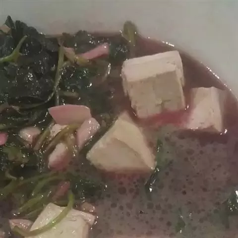 11. 临出锅前放入蒜末。