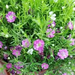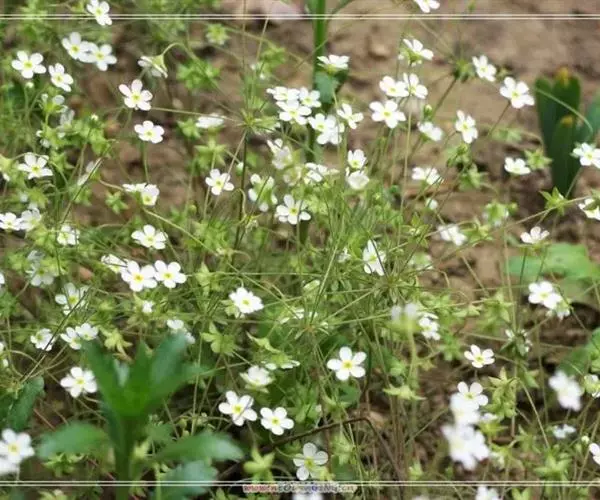 石竹科,丝石竹属。一年生草本,株高40-50厘米,茎部光滑,粉绿色有白霜,具多数直立叉状分枝。叶对生,基部叶矩圆状匙形,上部叶条状披针形。聚伞状花序着生于枝顶,花径约为5毫米,花色粉红色或者枚红色,花被5枚,楔形,具长梗。花期4-6月。结球形蒴果,种子细小而多数。品种还有白花种和白色大花种。