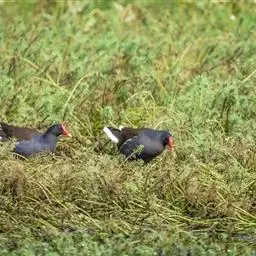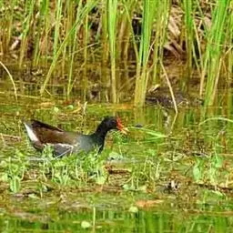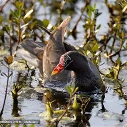 黑水鸡:是鹤形目、秧鸡科的鸟类,共有12个亚种。中型涉禽,体长24-35厘米。嘴长度适中,…