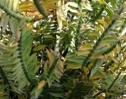 虎刺梅:别称铁海棠,是蔓生灌木植物。茎多分枝,长60-100厘米,直径5-10毫米,具纵棱,密生硬…