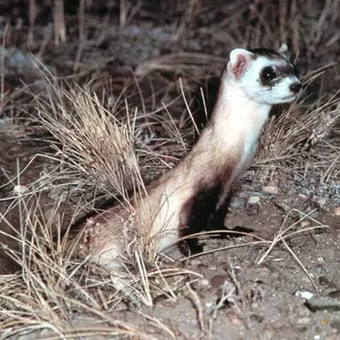 黑足鼬,是食肉目鼬科鼬属哺乳动物。外貌似黄鼬,脸面像浣熊,又像戴上了一具歹徒面具,…