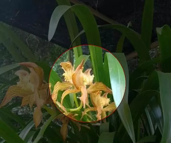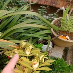 西藏虎头兰(学名:Cymbidium tracyanum L.):附生植物;假鳞茎椭圆状卵形或长圆状狭卵形,长5-11厘米,宽2-5厘米,大部分包藏于叶鞘之内。叶5-8枚或更多,带形。花葶从假鳞茎基部穿鞘而出,外弯或近直立;总状花序通常具10余朵花;花大,直径达13-14厘米,有香气;萼片与花瓣黄绿色至橄榄绿色,有多条不甚规则的暗红褐色纵脉;花瓣镰刀形,下弯并扭曲,长4.5-6.5厘米,宽7-12毫米;唇瓣卵状椭圆形,长4.5-6厘米,3裂。蒴果椭圆形。花期9-12月。