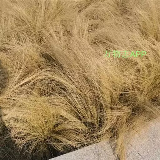 圆锥花序狭窄,几全部含藏于叶鞘内;小穗草黄或灰白色;颖尖披针形,先端细丝状,长2.5-3.5厘米,第一颖具1-3脉,第二颖具3-5脉(间脉多不明显);外稃长1-1.2厘米,背部具有排列成纵行的短毛,芒两回膝曲,光亮,边缘微粗糙,第一芒柱扭转,长4-5厘米,第二芒柱稍扭转,长约1.5厘米,芒针卷曲,长约10厘米,基盘尖锐,长2-3毫米,具淡黄色柔毛;内稃具2脉。颖果纺锤形,长6-7毫米,腹沟甚浅。花果期6-8月。