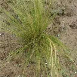 针茅,拉丁学名:Stipa capillata Linn.,多年生密丛型广旱生禾本科野生牧草。叶片通常内卷。顶生圆锥花序,小穗含1花,脱节于颖之上,具尖锐的基盘,基盘上具向上的髭毛,颖近等长,外稃顶端长而膝曲的芒。颖果。约100种,多生于干燥温带地区。我国有10多种,常成为草原上的优势种或建群种,它们具有旱生结构,如叶面积缩小、叶片内卷、气孔下陷、机械组织与保护组织发达。主要分布在欧洲,中亚,西伯利亚及中国新疆、内蒙古等地。春秋再生草嫩叶适口性好,马最喜食,羊牛次之。