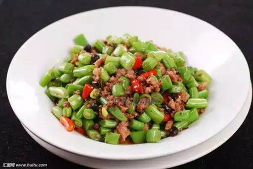 3.榄菜四季豆中的肉末可根据各人的喜好,选用猪肉、鸡肉等肉馅来烹调。