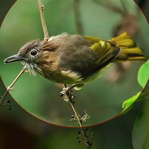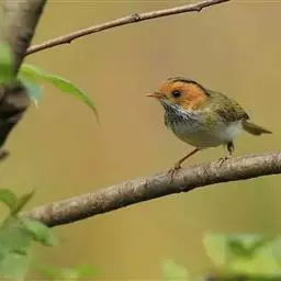棕脸鹟莺:体长10厘米,是一种色彩亮丽而有特色的莺鸟。头栗色,具黑色侧冠纹。上体绿,腰黄色。下体白,…