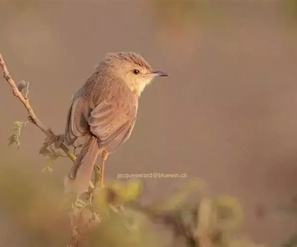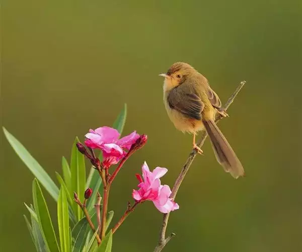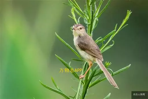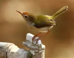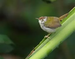 褐头鹪莺(学名:Prinia inornata):共有10个亚种。小型鸟类,体长11-14厘米。夏羽上体灰褐色,头顶较深,额沾棕,具一短的棕白色眉纹,飞羽褐色,羽缘红棕色。尾长呈凸状,外侧尾羽依次向中央尾羽明显缩短、灰褐色具不明显的黑色亚端斑和白色端斑。下体淡皮黄白色。冬羽尾较长,上体红棕褐色,下体淡棕色。