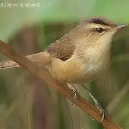 大苇莺:属小型鸟类,雌雄两性羽色相似。眉纹淡棕黄色;眼褐色;翅褐色具淡棕色的边缘;尾羽亦褐色,…