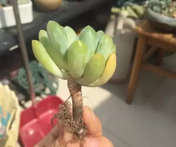 株高通常30厘米以内,茎直立,半木质化,随着植株的生长下部叶逐渐脱落在茎的顶端排列呈莲座状,肉质叶肥厚饱满,直立,匙形、长椭圆形,被白粉,在温差较大、阳光充足的环境中叶片呈红色至暗红色,非常漂亮。紫红色的花茎自叶腋抽出,小花钟状,在冬季或春季盛开。