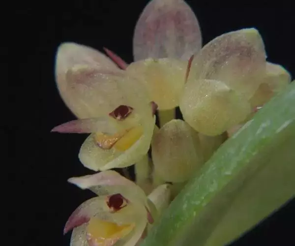 半柱毛兰:植物体无毛;假鳞茎密集着生,卵状长圆形或椭圆状,顶端具2-3枚叶。叶椭圆状披针形至倒卵状…