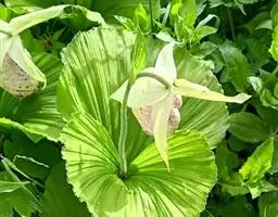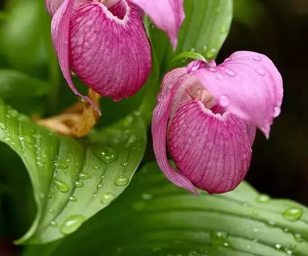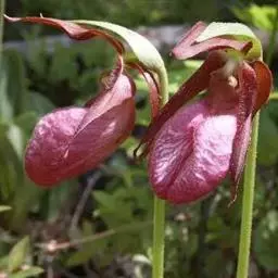 大花杓兰(学名:Cypripedium macranthum Sw.):植株高25-50厘米,具粗短的根状茎。茎直立,稍被短柔毛或变无毛,基部具数枚鞘,鞘上方具3-4枚叶。叶片椭圆形或椭圆状卵形。花序顶生,具1花,花大,紫色、红色或粉红色,通常有暗色脉纹,极罕白色;花瓣披针形,长4.5-6厘米,宽1.5-2.5厘米,先端渐尖,不扭转,内表面基部具长柔毛;唇瓣深囊状,近球形或椭圆形。蒴果狭椭圆形,长约4厘米,无毛。花期6-7月,果期8-9月。