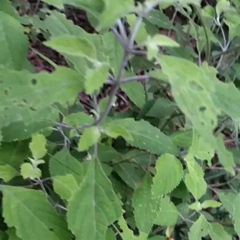 茎直立,多数,高0.6-1米,下部半木质,上部草质,四稜形,具四槽,有细条纹,黄褐色,有时带紫色,疏被微柔毛,不分枝间或有分枝,分枝短小而能育。