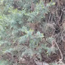 高山柏 灌木,高1-3米,或成匍匐状,或为乔木,高5-10余米,稀高达16米或更高,胸径可达1米;树皮褐灰色;枝条斜伸或平展,枝皮暗褐色或微带紫色或黄色,裂成不规则薄片脱落;小枝直或弧状弯曲,下垂或伸展。叶全为刺形,三叶交叉轮生,披针形或窄披针形,基部下延生长,通常斜伸或平展、下延部分露出,稀近直伸、下延部分不露出,长5-10毫米,宽1-1.3毫米,直或微曲,先端具急尖或渐尖的刺状尖头,上面稍凹,具白粉带,绿色中脉不明显,或有时较明显,下面拱凸具钝纵脊,沿脊有细槽或下部有细槽。雄球花卵圆形,长3-4毫米,雄蕊4-7对。